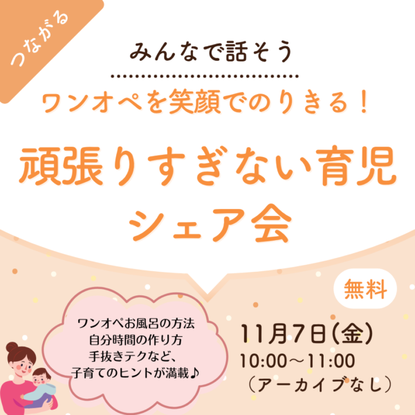 ワンオペ育児を前向きに乗り切るコツや、ママの心を軽くするヒントをみんなで話し合う1時間★