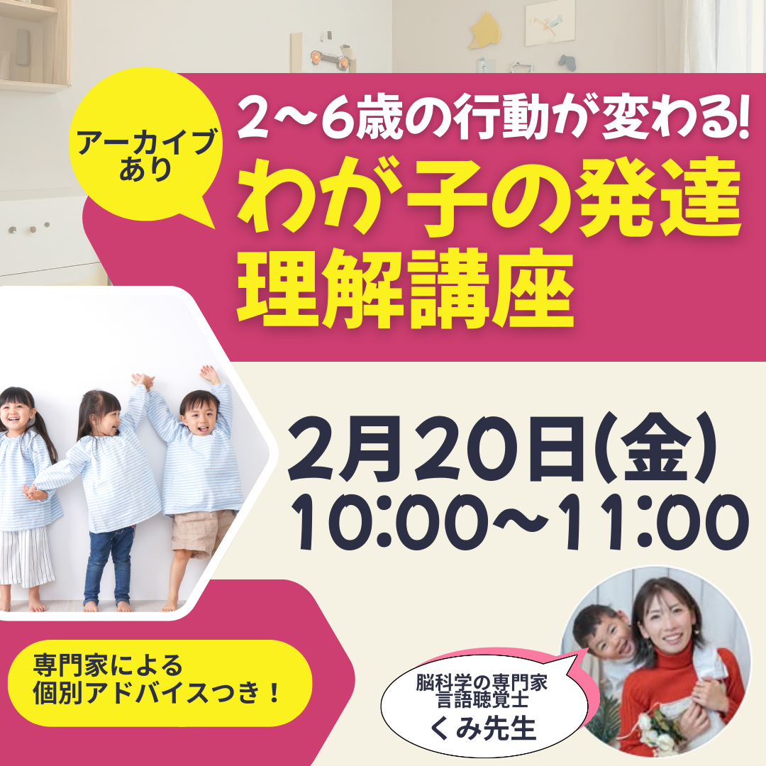 この講座では、幼児期に起こりやすい行動の理由を発達の視点から整理し、今の成長段階に合った声かけ・関わり方・環境づくりを具体的にお伝えします!